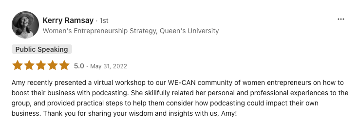 “Thanks so much Amy for your excellent podcasting member talk today – truly so full of great tips, insights, nuggets of wisdom and quotes!”