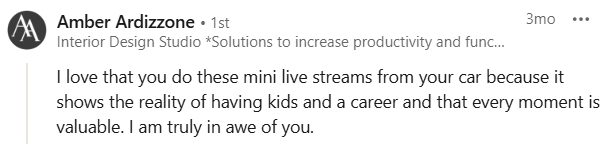 “Great tips and awesome to learn we’re not alone, having to struggle to integrate kids, family life, with personal aspirations and personal goals such as work.“