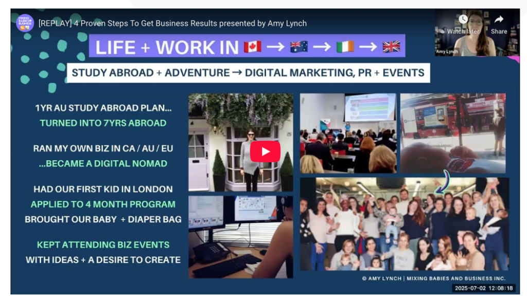 Mixing Babies And Business™ is a social impact movement aligned with the United Nations’ Sustainable Development Goals (SDGs) 5 Gender Equality and 8 Decent Work and Economic Growth. It’s been named one of Canada’s Top 100 Recovery Projects in 2020 by Future of Good, a Startup Canada Community and Ecosystem Partner since 2021 and I’ve spoken on virtual, hybrid and in person stages (with and without my kids) over the years for CreativeMornings, Running Remote Conference, Impact Hub, Queen’s University, PARO Centre for Women’s Enterprise, Global Invest Her, Women’s Entrepreneurship Knowledge Hub and Digital Main Street.